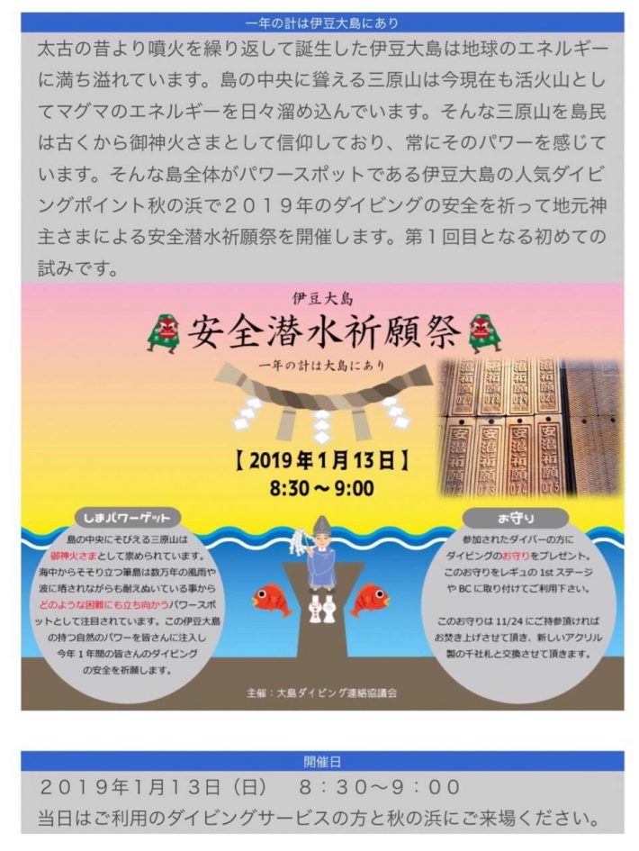 ↓↓《お年玉伊豆大島トレジャーツアー》⛩安全潜水祈願祭?詳細は↓↓
