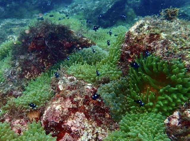ミツボシクロスズメダイ達が集まるイソギンチャク畑はとっても可愛くて、連写です??