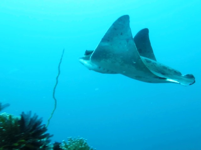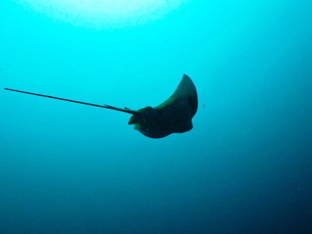 根のそばでトビエイを出待ちしていると