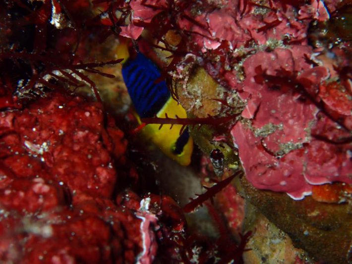 ソメワケヤッコは岩の隙間で、メソメソいじけていました